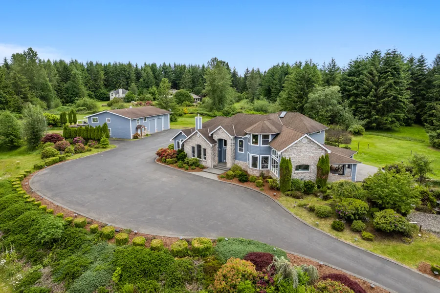 You found it! Can I interest you in a gated community with a luxury home, a 6-bay garage with RV parking, and amazing views of the North Cascades? Would you like the ability to entertain a throng of people with space to do so? Do you need a primary bedroom and en suite bath on the main, and enough multi-function space to support all your hobbies? Come on out and tour this amazing custom with Formal Living and Dining, Theater Room and a Chefs Kitchen. After a long day of working in your Office, Craft Room, Wood Shop, Green House, tinkering under the Car Lift, or running laps around the 5 acres, feel free to retire to the covered outdoor living area to marvel at your fortune that someone built your dream house for you. Welcome Home!