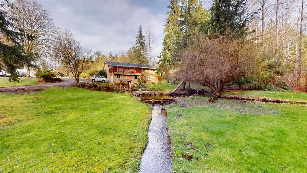 Surrounded by 2 acres of beautiful landscape that flourishes with bright flowers, healthy gardens, fruit trees and wildlife that come enjoy the natural spring feed pond and creek running through your yard. Sit on your deck and let the peaceful tranquility surround you as you gaze upon the beauty and listen to the birds sing while you're sipping your morning coffee. The 4 bedrooms, 3 bath, 2 living areas, rec room, detached art studio with bath, appliance hookups & loft, a shop with water, electric & full RV hookups gives you the comfort of seclusion & the space for those large gatherings you will be hosting. Recently remodeled kitchen, new roof & water heater, this home is a must see to take in all the beauty it has to offer.