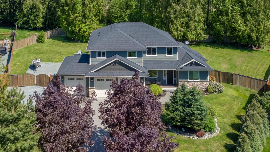 Located minutes off I-5, this elegant home features 3k sqft on a full level acre w/mountain views. Incredible main level primary suite w/tray ceiling, spa bath, w/i closet & private laundry rm. The chefs kitchen is open to the family & dining rooms, and to outside for entertaining. Amazing floor-to-ceiling fireplace in the living room, and an extra-large executive office w/built-ins. The upper level features large bedrooms, a 2nd laundry room, and an amazing game room/home theater with a bar. Covered Outdoor living with surround sound, TV, RV parking with power. Heated floors including in the 3-car garage! Custom millwork, doors, blinds & finishes throughout, and grand vaulted ceilings is just a short commute to amenities and 30 min to Seattle!