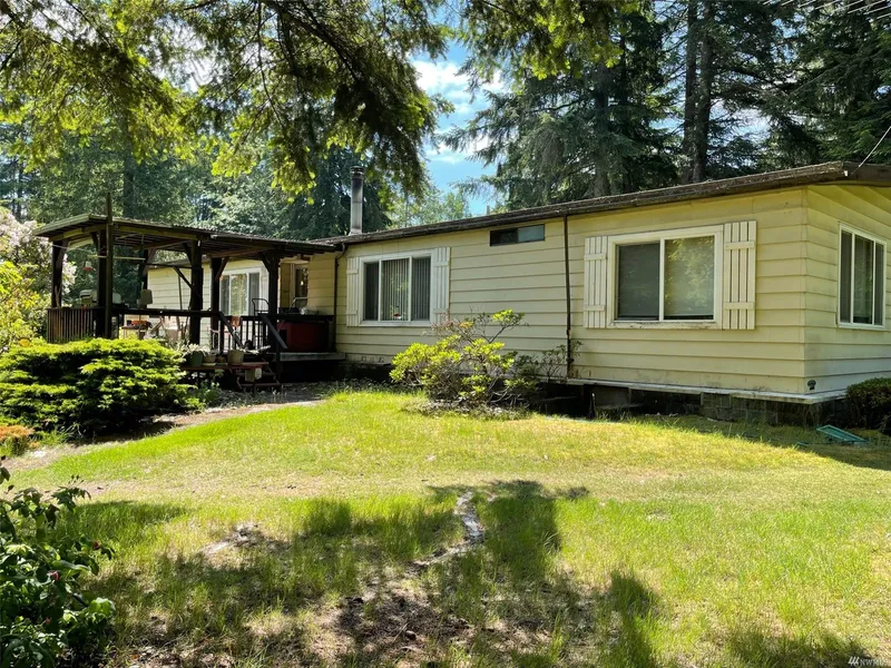 Hard to find 3 bed 2 bath doublewide with over 1700 sq ft on level 5 fenced ac. Doublewide includes full bath in main bedroom and separate utility room. Newer over, stove and dishwasher, Efficient heat pump included. Wood burning stove works great at heating the house during winter months. Lots of natural light. Dining room vanity off kitchen with lots of storage. There is a formal living area as well as a more casual living space. There is a 4-bay shop with large work bench and lots of storage space. Also has a wood stove for a little bit of heating on colder days. Two bay covered area for garden tools and wood storage. Carport, covered RV space for airstream, fruit room and greenhouse. Pump house for the well. Apple trees and Blueberries.