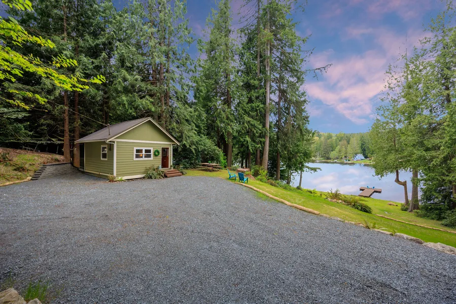 LAKESIDE TRANQUILITY ~ Welcome to your 178 feet of no-bank WATERFRONT dream property & cabin nestled on 1 Acre (3 lots) on the serene & peaceful Lake Roesiger! Experience breathtaking unobstructed panoramic West-facing views of the lake, mountain & magical sunsets. This cherished cabin features newer cement siding, metal roof, double-pane windows, & newer floors. New public water installed & 2 Bed Septic permit. Bring your RV (ample parking) to this exceptional property & live comfortably while you design & build your custom Lakeside home. Imagine life at the lake...water sports, relaxing on the private newer dock & enjoying nights sitting by the fire. Rare opportunity to own a piece of Waterfront Paradise & create life-long memories!