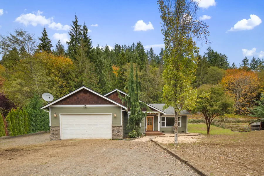 READY TO MOVE IN!! Unique stunning custom built rambler on 5 acres. Great opportunity to purchase next door 4 plus acre lot as well. Secluded country living just minutes to town. Open floor plan features vaulted great room with wood burning fireplace, new carpet just installed Nov 29, 2023, New Roof installed Dec 29 and, hand milled pine trim around all the windows and doors. Beautiful kitchen with quartz counters, tons of cabinets, a walk in pantry and stainless steel appliances. Spacious master suite with HUGE 5 piece master bath with jetted tub and large walk-in closet. Park like property provides privacy, trails, and fire pit. Mountain views and RV parking! Septic pumped and inspected Dec 1st, 2023 and available in Snohomish county website. You Must See!!
