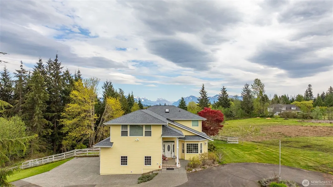 Elevate your lifestyle in this custom-built home nestled in Storm Lake Ridge, where community meets privacy on 6.9 organic acres of breathtaking Cascade Mountain views. Beyond the gated entry and paved driveway, discover a sunny 3789 sq ft 2-story home with 3 car garage, pasture and small stable. Boundless opportunities for customization. From the grand vaulted entry to the sizeable sun-drenched rooms including office, huge bonus room, gourmet kitchen and primary suite, this is sophistication meets comfort. Enjoy panoramic vistas from the large deck or primary suite balcony. Refinished hardwoods, new carpet, 2023- 50 yr. roof, 16KW auto generator, RV parking, equestrian much more -this is where tranquility and natural beauty converge.