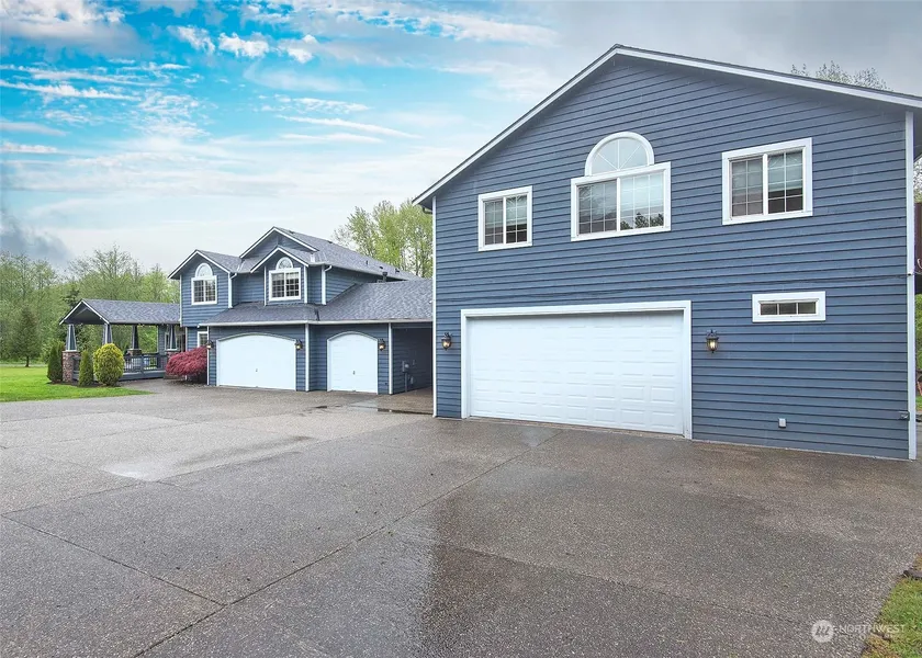 Sun drenched 2.5 acres of privacy & space for everyone. The main home features 3 bedrooms, 2.25 bath, main floor office & open floor plan. Upstairs is a generous primary suite w/ walk in shower & closet, laundry & over sized hall bath. PLUS a 1,020 sqft ADU w/ a separate entrance, 3/4 bath, heated floors and laundry. Space for all the toys w/ 6 covered parking spaces & RV parking w/ full hookup. Enjoy this summer with a well appointed outdoor space, huge deck, BBQ Area, kitchenette, fire pit, cooking fire pit, gazebo and a very convenient propane line. The shop is heated, has 220, air compressor that conveys, air lines and floor tie downs. Basically the perfect shop. New roof w/ transferable warranty & perfect exterior paint. Minutes to I5.