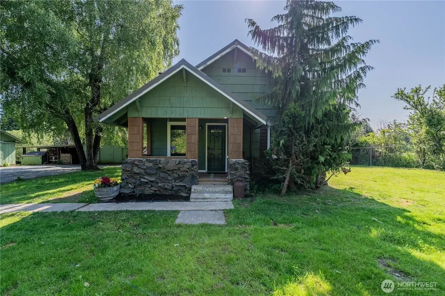 Rare opportunity to own a fenced 5-acre equestrian property with a charming 3 bed, 1 bath farmhouse, a detached shop/garage w/ office space & an art room, custom built covered RV/Boat Parking with concrete pad, darling barn, chicken coop & run-in shelter. The light filled home features a country kitchen, inviting fireplace, laminate flooring, newly remodeled bath, paint, heat & air-conditioning. The enchanting property w/evergreen & fruit trees is nothing short of magical as an alluring bridge leads you over a pretty pond & onto Frog Island where you can relax & enjoy the serenity of your land which backs to a protected growth area. Room for your toys and your animals. This property even has a shelter/bunker. Only 10 minutes from downtown!
