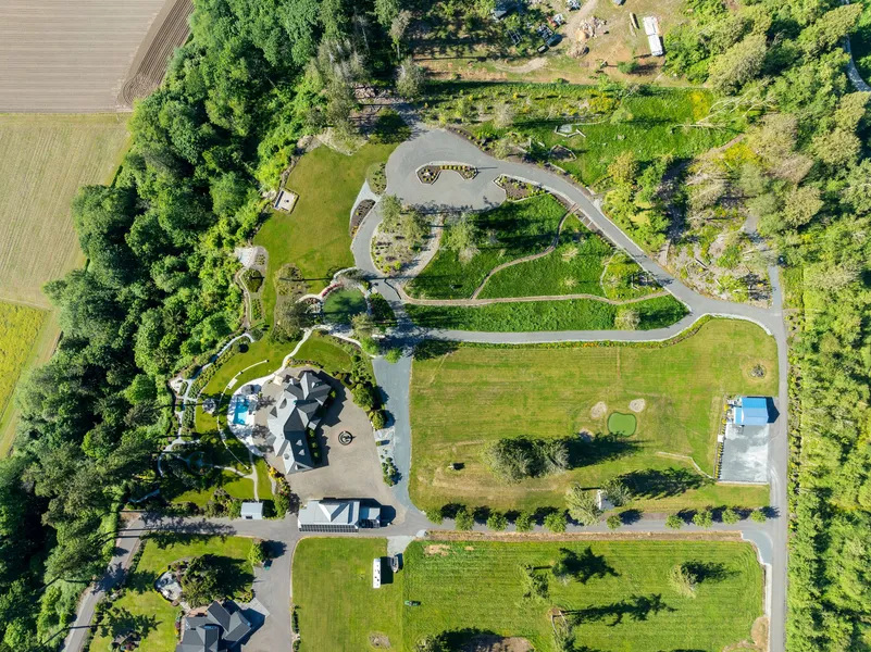 A private 5-acre Stanwood retreat with power and water, stunning year-round westerly views, and endless potential to build your dream home. Enjoy mature landscaping, solar- and starlit walking trails, a serene private pond, and a custom fire pit. Gated entry on a quiet road shared with only two neighbors. Panoramic vistas with soaring eagles, deer, and wildlife create a peaceful, natural backdrop. Build-to-suit opportunities; massing study available upon request.