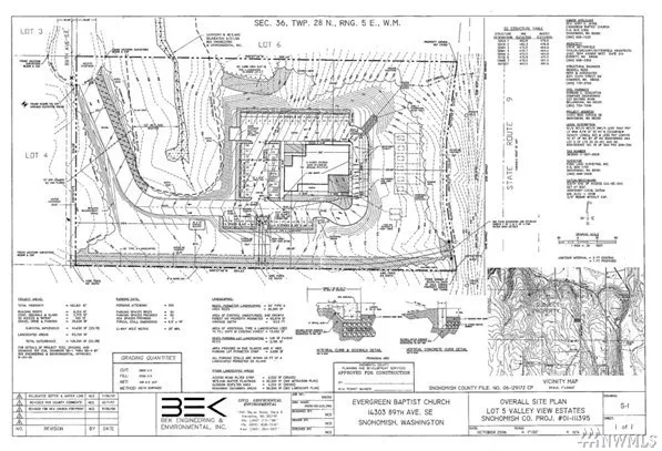 Construction site. 4.4 acres, zoned R5, with an application for a conditional use permit for the construction of a 9164sf 2-story church. The storm water facility is complete and installed. Current permit application expires 2020 Property fronts Highway 9 with 270-degree views to N, W and E. Access to the property is from 89th Ave SE to the North of the parcel.