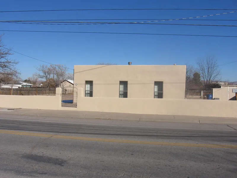 A beautifully restored adobe built in 1900, remodeled and added to in1984. Enter via a foyer and step into a large eat in kitchen with beautiful pine cabinetry, new smooth top range, dishwasher and refrigerator... lots of counter space. Restored original rough pine beamed ceilings throughout. 2 to 3 bedrooms and 1 bath. Large lot just under a half acre with a large storage shed. This is a one of a kind move in ready adobe.