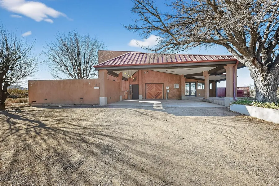 Experience timeless Southwestern elegance in this 2,913 sq. ft. two-story stucco home designed for comfort & privacy. An inviting enclosed courtyard welcomes you into a thoughtfully designed residence featuring three bedrooms, three baths, & a spacious office overlooking a picturesque rose garden. High vaulted ceilings & stained concrete floors enhance the open, airy feel throughout. The large chef's kitchen is equipped with premium Sub-Zero & Wolf appliances, maple cabinetry, & butcher block countertops--perfect for entertaining. The primary suite offers a walk-in closet & a spa-like bath with a separate shower and Jacuzzi tub. Mountain views await from the second story, while a generous workshop/garage adds versatility. This property can be purchased as a package with four rental units.