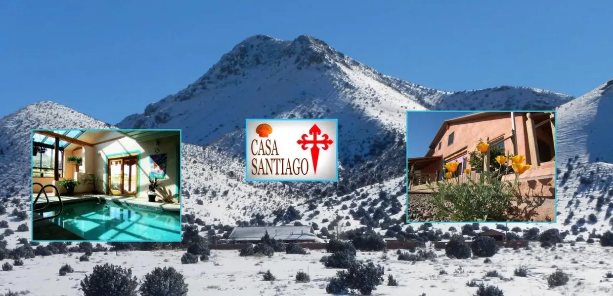 Adobe and frame (2nd story) southwestern style hacienda, with an open floor plan, and over 1200 sf of covered porches and deck, situated on 62.8 acres adjacent to Forest Service land. There is a master bedroom on the first floor. The second floor, though fully finished, has never been partitioned. It's approximately a 1,350 sf mezzanine/loft, carpeted with a large walk-in closet at one end and a neat 3/4 bath at the other end. With some framing and installation of a second bath, it could easily be converted to two bedrooms and a TV/study area at the top of the stairs. Indoor pool and solarium, radiant floor heating and passive solar, quality, high-flow Artesian well, new Aquasana whole house water filter system, Anderson doors and windows, new fill, blade work, and gravel on the 2/10 mi driveway, and much more. There is a concrete s...