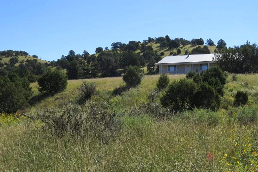Dusty New Mexico. Land of Views and Hardly No People. 2 bedroom - 1 bath, approx 1,200 sq ft on 3 acres-all fenced. Slump Block construction. Home has a covered 30' single carport. Well-266'. Power. Property has land line. Shed. 2 miles to Cibola National Forest. Elk and Mule Deer are your neighbors.