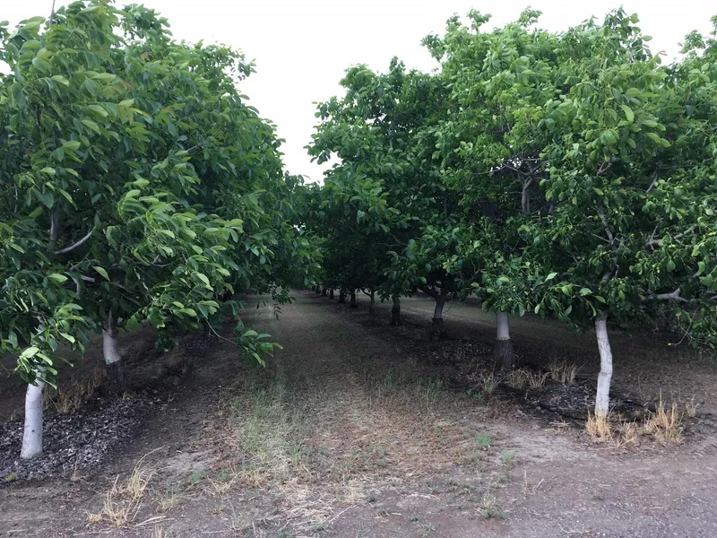 Variety of walnuts are Howard with paradox and black-walnut rootstocks and oriented on N-S rows with 13'x 20' spacing. Orchard was planted in phases and the average age is 11 yrs. old.