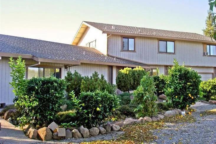 Approx 3800 sf home has 5 bedrooms 3.5 bathrooms. On domestic well. All bedrooms are large enough to accommodate a king size bed. There is a master bedroom downstairs and another upstairs. The kitchen window looks out past a free form in ground pool with lush landscaping to the vineyard and beyond. 30+ fruit trees bearing delicious peaches, figs, apricots, plums, pluots, pears, and even chestnuts.