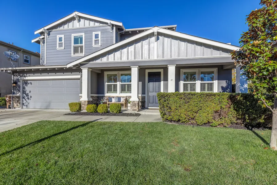 The upstairs holds an amazing primary suite with sitting area and luxurious spa-like bathroom. Two additional bedrooms share Jack n' Jill bathroom, and third bedroom is adjacent to study area and bathroom. The large bonus/rec room is perfect for movie night. Beautiful backyard has expansive lawn and patio for outdoor dining. This property is a must see!