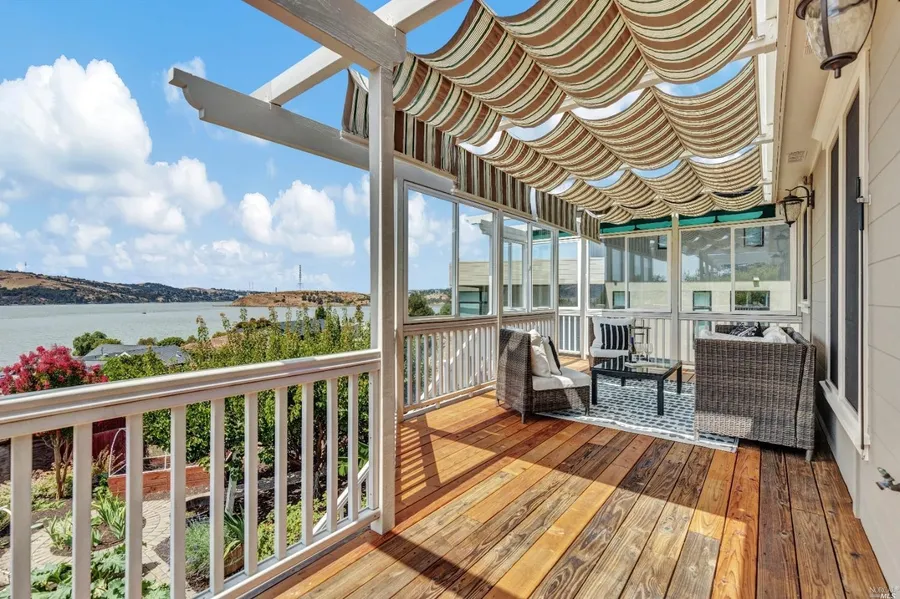 Enjoy Benicia's small town charm and convenience to Bay Area amenities along with culdesac living at its finest! Gorgeous Victorian home with exceptional water views, entertainers delight with multiple decks for outdoor enjoyment capturing the wonderful breeze from the straits. Windows galore with spectacular living room and beautiful fireplace. Upstairs primary suite with unobstructed view, office or sitting area, full bath, and sunroom. Cozy downstairs family room with fireplace, two additional bedrooms, full bath, and laundry room. Fully irrigated rose garden and raised beds for growing vegetables. Electrical vehicle charging in the garage. Elaborate heating system, newly painted interior and exterior, custom built unique floor plan. Don't miss out on this one-of-a-kind home! (Square footage on Tax records differs than actual size. Buyer to verify square footage.)