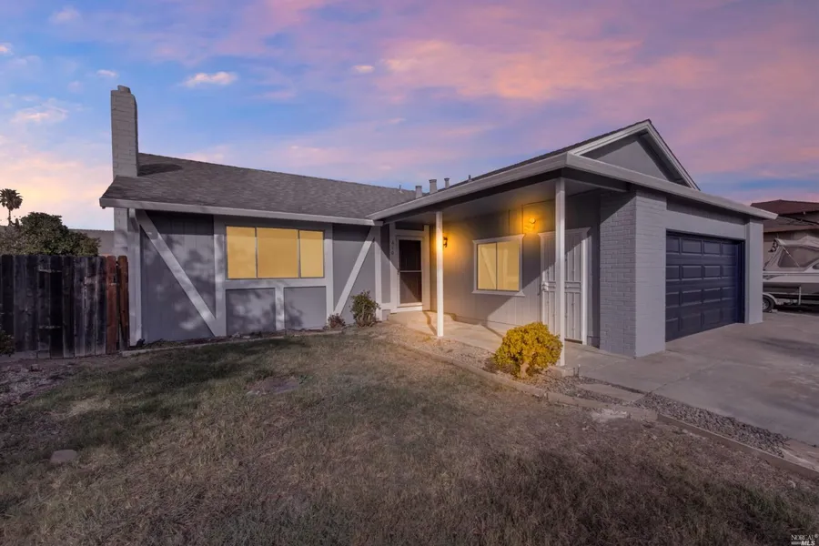 This beautiful home in the Dover Terrace South Area has 4 bedrooms and 3 baths. It has been freshly painted inside and out. Features carpet, tile and laminate flooring. New Laminate flooring in the Kitchen, Office. New Carpet in the Garage. Very close to schools and shopping. Garage has been converted, with a bathroom included, very nice for several different uses. A play room, a man cave, an entertainment area. Or simply add the rails back and use it to house your beautiful vehicle. You have options. You also have with this beauty an enclosed patio. Right across the street from Carl E. Hall Park, right across the street from Suisun Public Library. Just a few minutes away from Suisun Harbor, just a few minutes away from Grizzly Island. Come see this beautiful home!