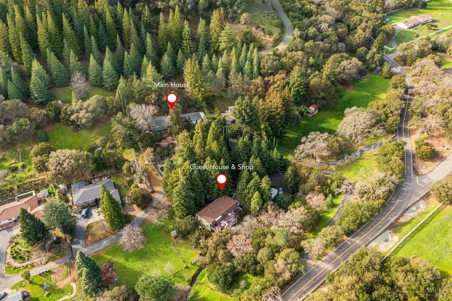 A once in a lifetime opportunity to live in beautiful Green Valley, picture this tree lined estate on nearly 2 acres of private property. The main home is all on one level including a 3-car garage. A separate guest house with garage, RV garage with roll up garage door and a private office. Relax by your private pool and imagine all the family and friends you can entertain at all your future gatherings. Plenty of room for all your outdoor toys, sports or home-based business. Additional RV pad with dump station.