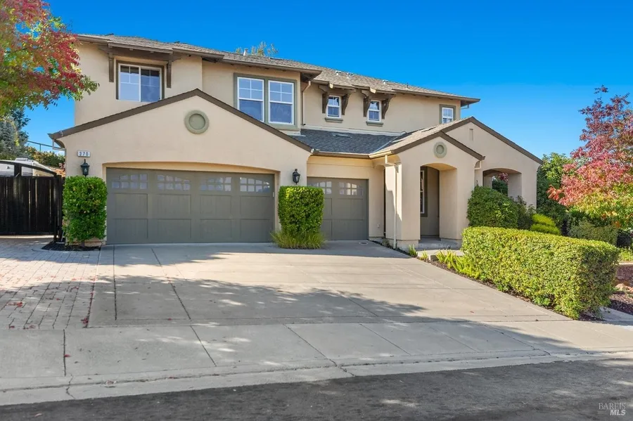 Resort living in desirable Waters End in Benicia that backs up to open space. Rare opportunity for a large home on a large lot. Relax and entertain in the private oversized yard that features covered spa with electronic upgrade to efficient controller (2024), fire pit with seating, kitchen with BBQ, stove top, refrigerator, storage and a large island. Save on water with the vast artificial lawn and pavers. Mature vegetation gives a park like feel. This 5 bedroom home is an opportunity for multigenerational living with a Jr suite on the main level. Chefs kitchen features 6 burner gas stove, double oven, built-in refrigerator, pantry, butler pantry and a large island. Special features include Anderson Dellamano hand scraped wood floors, crown molding, surround sound wiring, Hepa air filtration system, newer insulated garage doors, gig speed fiber optics cat 5 wiring behind walls, Lorex video camera surveillance around home and more, For your convenience laundry room is upstairs next to 4 bedrooms. Save $$ with the paid off solar. Plenty parking for all, 3 car garage with large RV parking, Class A, B, C 47ft. run, behind the gate.