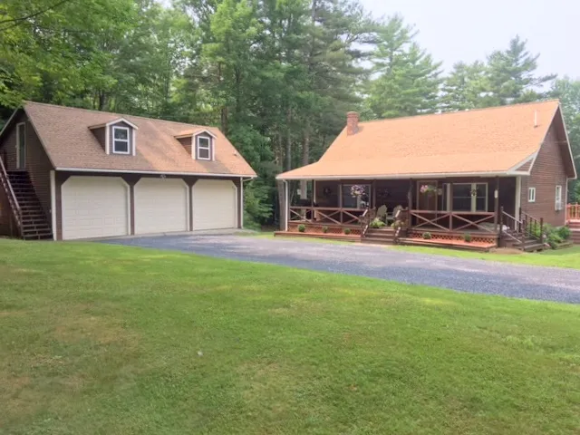 Lovely, well-cared for one-owner home on a pretty country lot and so convenient to I-95, town, shopping and more! Features wood floors, primary bedroom on 1st floor, kitchen with all the appliances & custom cabinets, 2 large bedrooms up also! Charming farmers porch on front, detached 3 car garage (30'x36') that is finished above with a full bath, kitchenette and a bedroom. Great space for your guests. All this plus a 24'x30' barn with 4 stalls & storage up. Great for your horses or other animals. Beautiful private yard and back deck to enjoy!