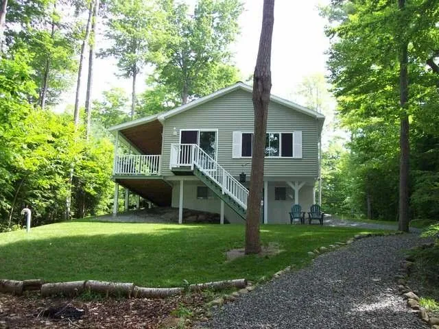 WATERFRONT! Beautiful 8 room, 3 bedroom, 1 bath home located on a peninsula with 100 feet of shore frontage on Big Indian Lake. This lot is gorgeous with tall pines, a gradual slope to your gravel shore frontage. Enjoy excellent fishing, boating, jet skiing and canoeing on this quiet and peaceful cold water lake. Listen to the loons and watch the area Bald Eagles. The home features a full finished walkout basement w family room, bedroom and sitting area. Upstairs offers 2 bedrooms, 1 bath, living room, kitchen, dining area, all season room and covered porch. An oversized one car garage with store all of your toys. Being sold completely furnished & turn-key.