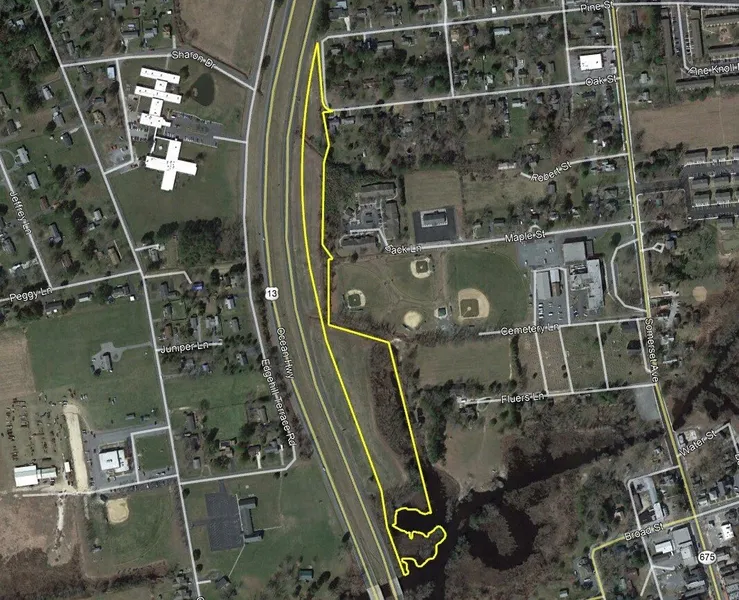 8.70+- acre unimproved tract located with over 2,600+- feet of frontage along the northbound lane of RT 13/Ocean Highway. Currently zoned R-2 – Medium Density Residential in Somerset County and adjoining the municipal boundary of the Town of Princess Anne. Town services (water & sewer) located just to the east of property. Southern end of property has frontage along the Manokin River. Recent survey available. Wetlands delineation is in progress. Access is through Washington High School Back Rd.