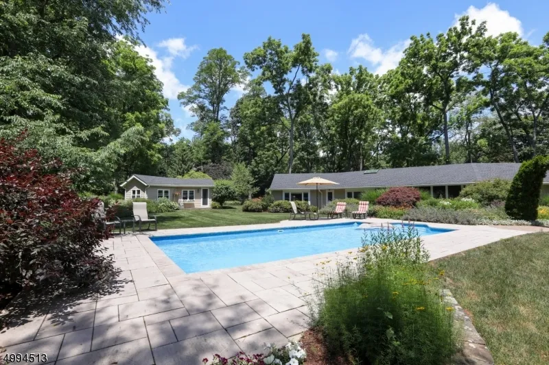 Virtual Open House from 12-12:30 via Zoom Meeting ID 906 492 0712 & Password 916703. Open house from 1-4pm is by appointment only, so please contact me if you would like to attend.Charming and spacious describe this updated home which offers one floor living and sits on a magnificently landscaped property complete with perennial gardens, a heated pool, and a cozy guest house, all tucked away on a private road. This home has been lovingly maintained and offers an open floor plan, hardwood floors, vaulted ceilings, and skylights throughout + updated kitchen, 3 fireplaces, huge finished bonus room over the garage, and 2 bucolic, serene acres, yet just minutes away from 3 town centers including, Basking Ridge, Bernardsville & Morristown. A true retreat! All this and part of the Basking Ridge school system, plus easy access to commuter highways and rails. Large finished space above garage which could be used as a rec room/ home office + a 1 bedroom, 1 bathroom w/living room pool house.