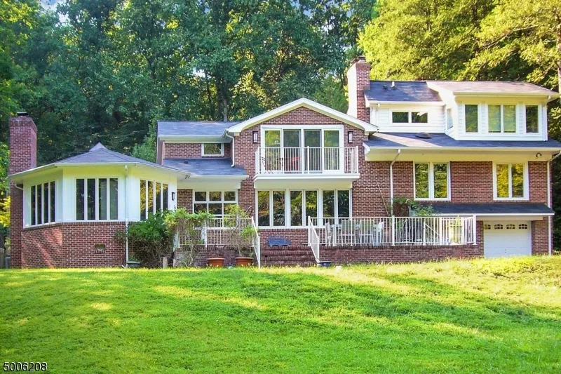 Spacious 5 bedroom home on 3.5 acres tucked away on a private lane off desirable cul-de-sac with large, level backyard surrounded by wooded and pond views. The large deck is perfect for entertaining. Minutes to train and downtown. This property must be seen to be appreciated. Come in for a personal tour, see the abundance of light and space, feel the warmth of this Bernardsville home. The sunlit master bedroom with a private balcony provides a tranquil respite, relish the luxurious master bathroom, steam shower, heated floor and air bath tub with an aromatherapy system, 3 ample closets, built-in dresser and bookcase. The 5th bedroom features ensuite full bath w/jetted tub. This unique floor plan offers several options to conveniently work from home and can easily accommodate remote school attendance/tutoring.