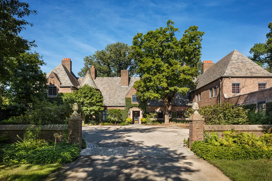 Set at the end of a sugar maple lined drive and just beyond the gatehouse, the home stands majestically. The faade is exquisitely framed by the formal gravel motor court with antique lion fountain, stacked stone walls, and mature plantings.