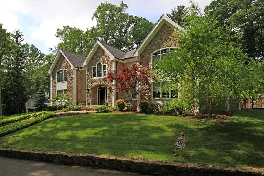 Built in 2011 and extensively enhanced since, this visually striking home is customized throughout its three finished levels. Ideal for those looking for something other than the local/traditional norm, it's a touch of California on historic Bernardsville Mountain. Impressive two-story living and dining rooms with floor to ceiling stone fireplace, coffered ceiling & dramatic wall of windows. Superb kitchen with custom white cabinetry, marble countertops, cherry island and breakfast bay. First floor master suite with boutique style walk-in closet and master bath with Carrera marble, jetted tub and oversized shower. Four additional en-suite bedrooms. Second floor sitting room and laundry room. Finished lower level with billiards room, kitchenette, wine, exercise and mud rooms. Spectacular rear entertainment area with newly refinished pool, pool house, terraced patios, stone and brick walls...