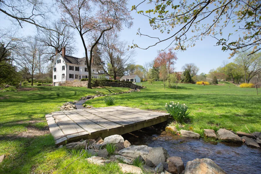 Magical Site! Historic Colonial with Barn, Smokehouse, Mill Race, Spillway views, and Waterfall. Over four acres of lush grounds. Breathtaking Water Features. Original Van Dorn Home--Landmark Franklin Corners. One-of-a-kind jewel in Historic Section of Bernards Twp. adjacent to Van Dorn Mill. Painstakingly and extensively updated and rebuilt with modern amenities, yet retaining its Colonial Era charm and grace. Residence offers five bedrooms, 4-1/2 baths on four levels. Generous closets. Finished walk-out basement with d stove and stone fireplace. Magnificent views and water sounds found on the rear patio of this gracious home, comfortable everyday living and glorious entertaining. The Period Barn has been totally rebuilt and is currently used as the Owner's Workshop. Eye catching Smokehouse entirely rebuilt. A rare find.