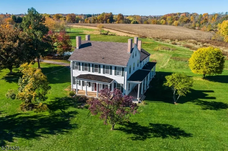 River Edge Farm is a breathtaking bucolic retreat, circa 1840 Colonial farmhouse set on 8+ acres of picturesque property, within an hour of Manhattan. Continuously Enhanced Residence showcases original architectural details, pocket doors, period moldings, wide plank flooring, eight wood-burning fireplaces, a newly renovated Custom Kitchen, spacious mudroom/laundry/pantry with a full bathroom. A Second level boasts four ample size bedrooms, two full baths, and a separate office suite with two sitting rooms and a wet bar. The walk-up attic offers an additional living and or entertaining space. Several outdoor porches, and a heated gunite pool, allow for seamless relaxation and entertainment spaces. Three large barns with a workshop offer endless opportunities for work and play. Award Winning Schools. Proximity to shopping, restaurants, and NYC bus.