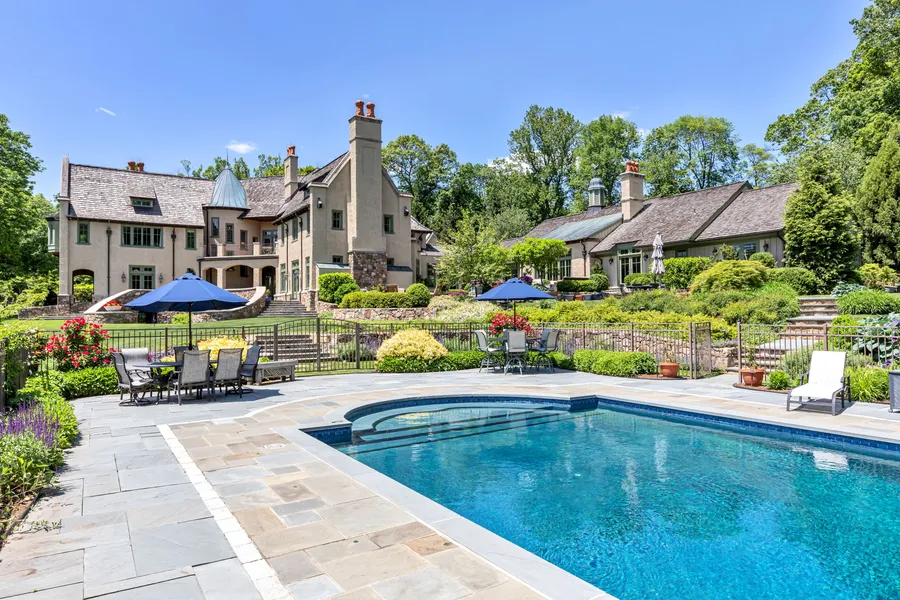 Introducing an extraordinary European Estate that embodies elegance, comfort, and youthful energy. This custom-built masterpiece has undergone meticulous renovations and expansions, elevating the main house, carriage house, and cottage to the pinnacle of luxurious living. Nestled on over 22 meticulously landscaped acres, the property offers breathtaking views and an unparalleled level of craftsmanship both inside and out. Step inside to discover an array of unmatched architectural details and top-notch quality. The main level boasts a billiards room, bar, media rooms, an office, a library, and two of the five ensuite bedrooms, providing convenience and accessibility. With a total of eight fireplaces, six indoors and two outdoors, as well as two fire pits, the ambiance is warm and inviting. Multiple sets of French doors lead to various terraces, including an expansive bluestone terrace equipped with a kitchen, dining areas, water features, and two additional fire pits, perfect for entertaining guests. The property also features a 40-foot heated pool, allowing for leisurely swims and relaxation. Additionally, a fabulous carriage house provides dynamic office and living space, while a charming three-bedroom cottage offers extra accommodation options. For car enthusiasts, there are six heated and humidity-controlled garages, ensuring the utmost care for your prized vehicles. Rest easy knowing that the property is equipped with high-end security, utility, and mechanical systems. The stucco exterior is crafted with the finest masonry, and sprinkler and snow melt systems are in place for added convenience and safety. This exceptional estate represents a rare opportunity to experience a truly refined and luxurious lifestyle. From its stunning architecture to its meticulously designed interiors, every aspect of this property exudes timeless elegance and sophistication. Don't miss the chance to call this unparalleled estate your own