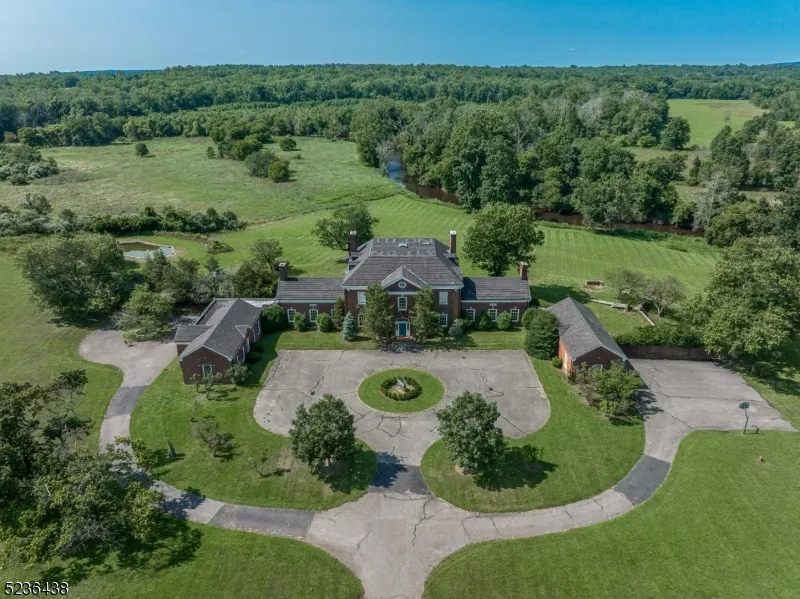 Recapture a magical period of history as the new owner of this grand Bedminster estate, circa 1924. Originally know as the "Field House, this vast offering along the Lamington River was among the storied homes owned by successful American entrepreneurs who enjoyed riding with the Essex Fox Hounds on weekends and commuting to NYC during the week. 124 acres of gorgeous rolling grassy hills bordered by iconic white fencing is a dream for lovers of any number of equestrian sports. The well-preserved Georgian Manor with 27 rooms spanning approximately 13,500 sq. ft. was modeled after the governor's mansion at Williamsburg, VA with bricks provided by John D. Rockefeller. Architecturally designed for a luxurious lifestyle by Cross and Cross of Tiffany fame, the elegant home includes many unique features for the period, such as a 3-story dumb waiter, fully finished attic, special high quality construction techniques, superb wood finishes, central air, a heated attached 3 car garage, numerous custom windows strategically placed to capture stunning views, vaults, and an extensive wine cellar. Preserved farmland zoned R-!0, and surrounded by other preserved farms, the property offers complete privacy minutes from I-78. Multiple barns with over 55 stalls, many equestrian amenities, and 3 cottages with 8 separate living quarters allow for multiple approved business uses and opportunities for guest or staff housing, and rental income.