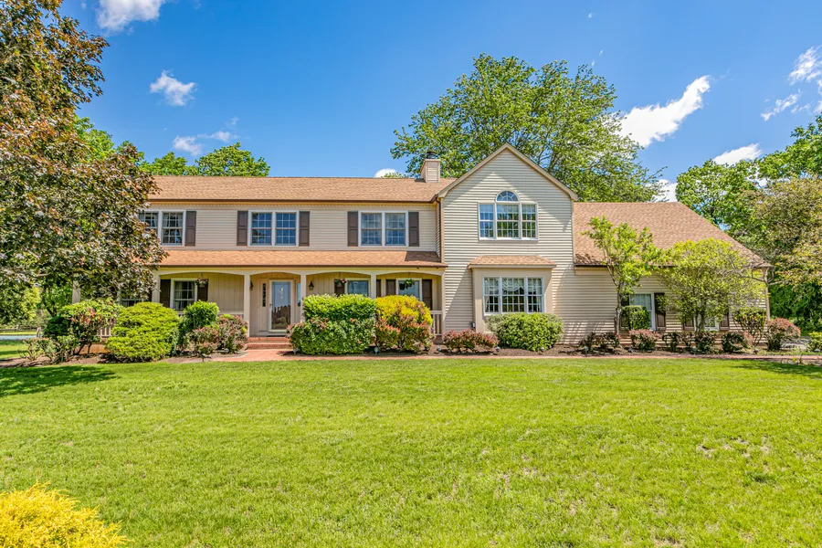 Surrounded by mature trees and a deep, level lawn, this expansive home brings together rustic character and spacious modern living in a way that feels both grounded and elevated. From the moment you step inside, the warmth of refinished wood floors underfoot hints at the kind of thoughtful craftsmanship that runs throughout. These floors stretch across both levels of the home, anchoring a layout that is as generous in size as it is intentional in design. At its core is a large, timber-ceilinged kitchen, unapologetically rustic. Exposed beams and timber above complement the room’s relaxed palette, while a casual dining area welcomes everything from quick breakfasts to lingering conversations. Just beyond, the living and dining rooms open into one another with a sense of ease. The family room is a space for all seasons. A wood-burning fireplace brings a comforting focal point in the cooler months, while double atrium doors frame views of the yard and open to a wide deck for summer living. Tucked just beyond is a library, thoughtfully fitted with built-ins and a window seat. The primary suite is a retreat in the truest sense, complete with its own fireplace, generous closets, and a sky-lit bathroom that pairs a whirlpool tub with a separate shower. But it’s the addition behind this suite that sets it apart, offering a vast bonus room, accessed by a set of back stairs, that’s ready to flex as a home studio, wellness space, or media room. The direct connection to the bedroom gives it an intuitive flow that can be closed off or opened, depending on needs. Elsewhere, four additional bedrooms are served by two full bathrooms. Every inch of this home was designed to feel livable, with room to grow and evolve. Outside, the setting is expansive and understated, with a large grassy yard that feels like an open invitation to play, plant, or simply sit and breathe. A new septic system will be installed before closing, and most windows have been replaced with Renewal by Andersen windows.