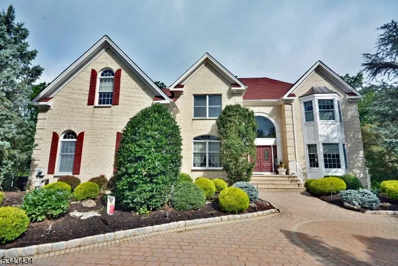 Nestled on a serene cul-de-sac in the sought-after Warren Rise neighborhood, this elegant brick-front colonial is a true retreat on 4.61 acres. A circular stone paver driveway welcomes you to this distinguished residence, where timeless design and spacious living await. Step into the gracious two-story foyer, setting the tone for refined interiors. The formal living room features hardwood floors, decorative molding, a gas fireplace, and palladium and bay windows. The banquet-sized dining room showcases inlaid wood floors, elegant molding, and sun-filled windows. The center-island kitchen offers a breakfast bar, bay dining area, and wet bar, flowing into the two-story family room with skylights, a brick fireplace, and back staircase. A home office, laundry, and powder room complete this level. Upstairs, the primary suite is a sanctuary with a fireplace, luxurious bath, and French doors to a balcony. A second ensuite bedroom features a sitting room and full bath, while two additional bedrooms and a hall bath complete this level. The finished lower level provides exceptional space with a full bath, exercise room, game room, great room, and leisure room. A private backyard oasis features a deck, separate pool house with an in-ground saltwater pool and heated flooring, all set against beautiful wooded views a perfect setting for relaxation and entertaining. Don't miss this opportunity to own a distinguished home in a premier location! This home awaits your personal touch.