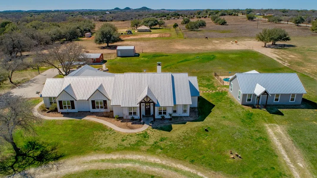 WHAT A GREAT OPPORTUNITY TO OWN A SMALL ESTATE JUST OUTSIDE OF GLEN ROSE, TX. THIS PROPERTY HAS A SPACIOUS 5 OR 6 BEDROOM, 5.5 BATH CUSTOM HOME AS WELL AS A 3 BEDROOM 1 BATH GUEST HOUSE WITH IN GROUND GUNITE SALTWATER POOL. THE MAIN HOUSE HAS 2 MOTHER IN LAW SUITES AND 2 SEPARATE OFFICES. ALL OF THIS IS SITUATED ON APPROXIMATELY 10 ACRES THAT CONTAINS AN OUTDOOR KITCHEN AND SITTING AREA WITH FIREPIT. ALSO INCLUDED IS 2 METAL BUILDINGS THAT CAN BE USED AS STORAGE OR WORKSHOPS. THIS TRACT HAS SOME PRETTY TREES THROUGHOUT AND IS ON A CORNER LOT. SCHEDULE YOUR SHOWING TODAY TO APPRECIATE THIS PLACE IN PERSON. PRICED TO SELL!