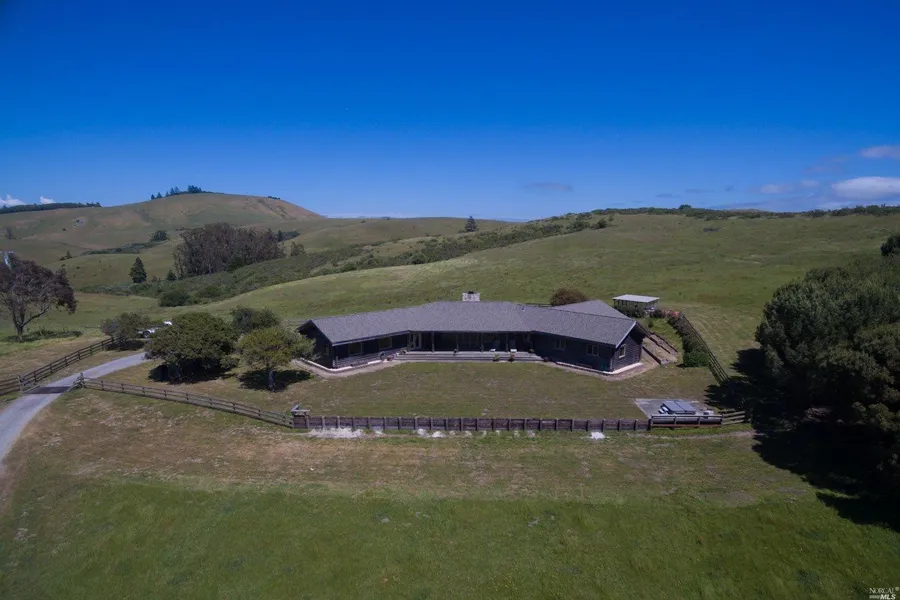 2 four-bedroom homes, main home is over 2700 sq. ft. second home is over 1700 sq. ft. 3 barns with over 14,000 sq. ft. of storage. Privacy, open fields, large reservoir and over 1 mile of Salmon Creek frontage. Rainwater catchment system with 235,000-gallons of underground storage and 5 wells compliment this 395-acre certified organic working ranch with approx 50 acres suitable for grapes located on the edge of Bodega just 5 miles from the coast.