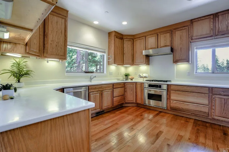 Safe and Sound... You sit on the large deck overlooking the Timber Cove reservoir. With no other house in sight. This quality craftsman building has newly stained redwood and cedar siding, 3 bedrooms, 3 1/2 baths, large living room with fireplace and views, separate dining, updated kitchen, glorious deck-all on a single level-where you, the homeowner, get to soak it all in. Add in the workshop and bonus space downstairs, equipped with fireplace, shelves, bathroom and exterior access for you to finish as you please, a powerful generator that is wired throughout the house to give you power and piece of mind when it gets wild like our gorgeous Sonoma Coast does, a large 3 garage, and you have a dream home, the place to leave it all behind...Did we mention it sits on over an acre and a third of land dotted with majestic redwoods? *Reservoir is Timber Cove Water Company private property. No a...