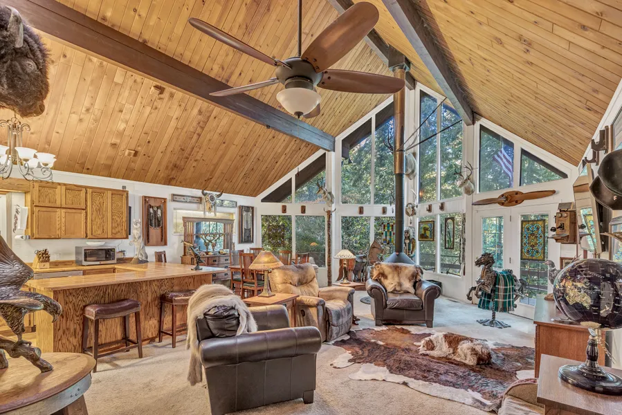 Two adjoined lots. One with the beautiful wood ceiling A frame you see in the photos, one with a level pad ready for a home! Redwood country living with sunshine filtered through to the home and three decks. These properties are not in the flood plane of the Russian river! This is an incredible get-away, relaxing, beautiful and private. If this is the feel you are looking for in a property, this is the one. New appliances,new custom windows, steel roof (coated), and a new water heater. Shared driveway. Located across hwy 116 from Northwoods Golf Course and about 10 minutes west of downtown Guerneville. The .33 acre is one lot, combined two lots = .67 acre.
