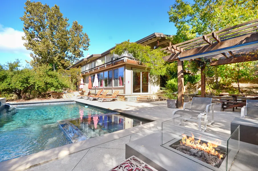 Luxury retreat in Alexander Valley encompassing all the amenities you need to feel pampered and in touch with the fertile soil beneath your feet. Enter through a private gate to an oasis in paradise, 1.26+/- acres with a 2700+/- square foot custom home. Gorgeous wood floors, vaulted ceilings, a glorious exposed beam, open concept kitchen with oversized windows throughout the house give a retreat feel. Three large bedrooms all with views of the gardens. Downstairs you will find a private lounge and full bath with spacious sauna to enjoy after a day in the pool. The pool and hot tub with stately water feature, outdoor kitchen and sweeping views of the valley you will forget all about that missed trip to Europe this year and rejoice in the splendor that is your home. Equipped with hobby vineyard and a plethora of fruit trees (apples, pears, peaches, cherries, oranges, lemon, pluot, olives, fig, pomegranate and more). Cloverdale is so charming, do not miss Dahlia & Sage community market while you're here.