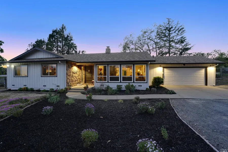 Upscale rustic best describes this peaceful oasis, located at the end of a secluded country lane on nearly 2 level acres. Tastefully modernized 3Br/2.5Ba, the owner spared no expense on this jewel. Memories of a Tahoe lodge appear upon entering this custom-built single story which has been recently refreshed with contemporary exterior and interior paint. Relaxed gatherings lie ahead in the captivating living room boasting an open beam ceiling, lavish windows and a toasty fireplace. Love to cook and entertain? The stainless kitchen features granite counters, rich cabinetry and fabulous Wolfe and Bosch appliances, ready for a quick weeknight meal or large dinner parties. The family room is located adjacent to the well-appointed kitchen and offers a 2nd fireplace. Relax, unwind and enjoy your favorite beverage on the over-sized deck with ultimate privacy and serenity. Possibility for ADU? This magical setting is your country dream! Close to the Russian River, wine tasting and restaurants!