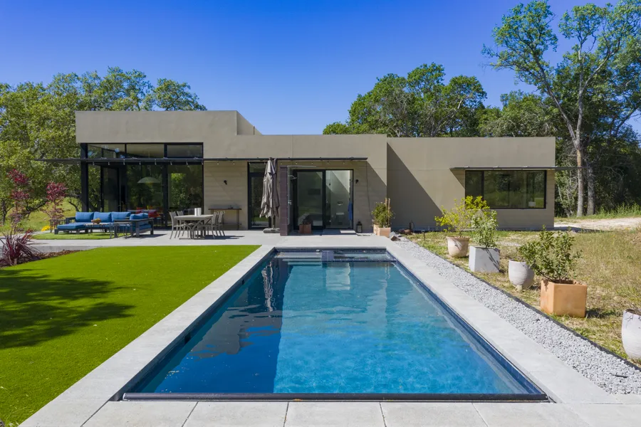 Brand new custom contemporary home with tall ceilings, modern styling, and an easy indoor-outdoor lifestyle. Completed in Fall of 2020, there are 2 bedrooms and 2 bathrooms, plus a spacious office in the single level house; and the septic, electrical, and plumbing are already stubbed out for a future guest house. The great room impresses with a dramatic wall of polished steel and magnificent views through the floor to ceiling sliding doors. The kitchen is open to the great room with a double Fisher & Paykel refrigerator, and Bosch induction cooktop, wall oven and microwave, and dishwasher. Beautiful custom cabinetry with dovetail joinery. A temperature controlled wine storage room is located off the sunny skylit hallway. The Principal bedroom has dramatic windows to capture the views, a large walk-in closet, and a modern en-suite bathroom with direct access to the outdoor shower, pool and spa. Step outside and enjoy the entertaining terrace with views of the mature oak trees, lovely pastures and wildflowers, and Sonoma Mountain. There are so many well thought out design features incorporated in this property, and the zoning allows for vacation rentals. Enjoy the best of sophisticated country living, gorgeous views, privacy and quiet, and just a stone throw from the charming town of Glen Ellen and all that wine country offers. A must see!