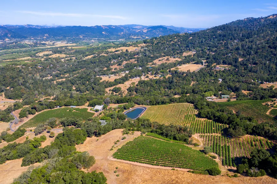 'Asti Sanctuary & Vineyard Estate' is comprised of 42 sensational park-like acres with panoramic outlooks across historic Italian Swiss Colony. Enter the private gated grounds and immediately be wowed by the wide variety of mature flora which abounds. There are palm trees, agaves, yuccas, and a multitude of fruit trees. The very comfortable 3 bedroom Farmhouse with a decadent wine cellar is surrounded by 15 acres of Alexander Valley Cabernet Sauvignon. Then, there's the pool and amazing barn. Be prepared to swoon.
