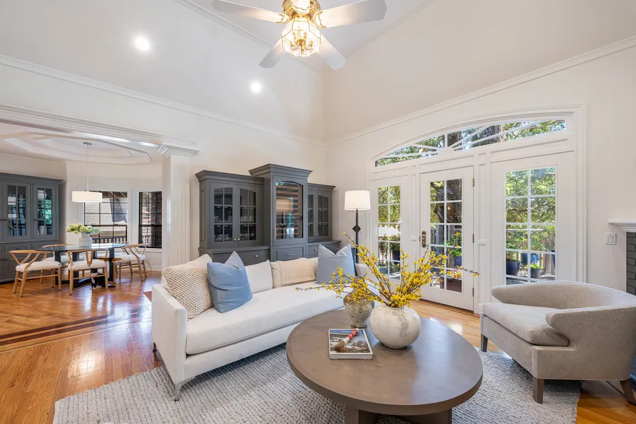 19141 Baytree Lane is a spacious wine country residence and carriage house sited on approx. 4 acres in the prestigious George Ranch. Main residence includes 3 bedrooms, 3 full baths, 2 half baths, 2 offices, exercise room and an attached 3 car garage. One bedroom suite, separate from other bedrooms, is a perfect private retreat. Designed with the chef in mind, the kitchen features a Sub-Zero fridge, Wolf range, granite countertops, and ample storage in the cherry cabinetry and pantry. The primary suite has black marble, fireplace, soaking tub and an expansive walk-in closet with abundant storage. French doors throughout the home lead to a spacious deck with views of the neighboring vineyard, raised garden beds and the ideal location for a pool. The carriage house features a 2 car-bay with a separate equipment/tractor bay, custom 4,000 bottle wine cellar by Artistic Wine Cellars and a guest apartment with full bath and fireplace, making it an ideal caretaker or in-law apartment.
