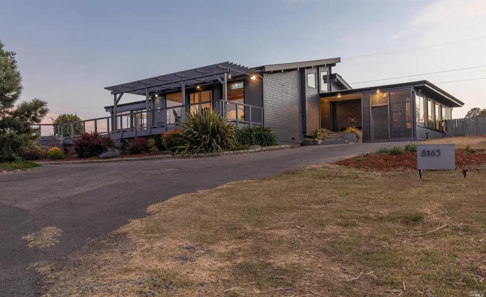 Nestled in the West county hills of Sebastopol on nearly 5 acres of apple orchard, this meticulously cared for home will delight those desiring wide open views of mountains, vineyards and rolling hills. Contemporary architecture resembles mid century modern with 2,307 SF, 2 bedrooms plus a large study and separate entry. Open concept living with wood beamed ceilings and floor to ceiling windows abounds natural light. The beautifully remodeled kitchen features white cabinets with pull out drawers, granite counters, stainless appliances & bamboo floors. Indoor/outdoor entertaining from the spacious formal dining room and expansive deck. A private patio with sparkling lap pool. Gardeners' paradise with a green house, raised beds, native plants and 13 varieties of fruit trees. The large outbuilding is suitable for an art studio, work out area, or car storage. Solar, bocce court, dog run so m...