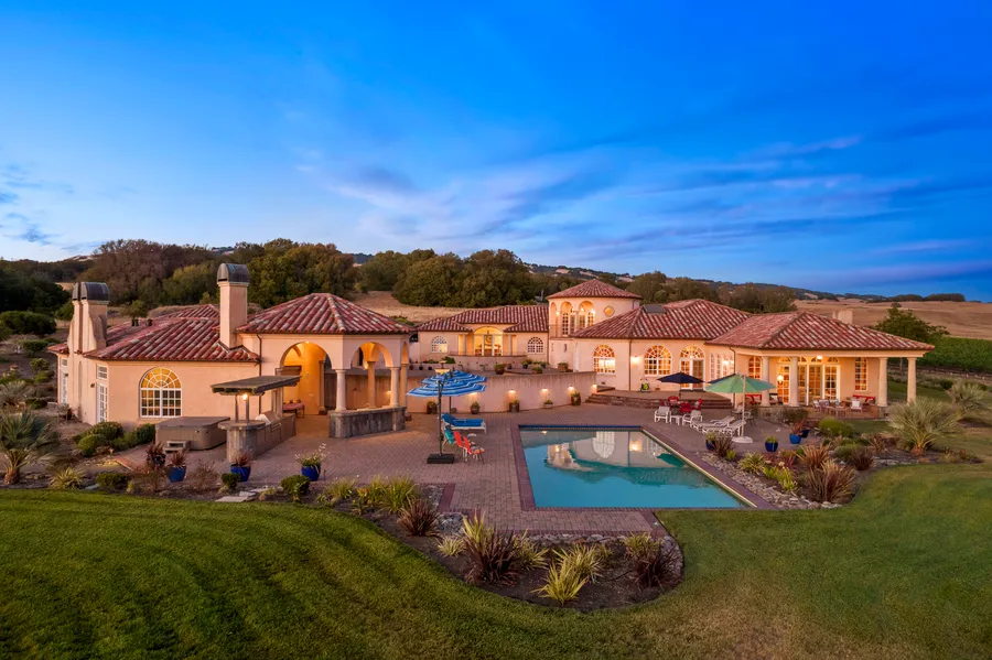 The EqWine Estate, so named for its seamless marriage of world class wine and equestrian facilities, is like no other in Sonoma County. Sited on 42 acres in the highly sought after Petaluma Gap AVA, the property features 16 acres of Pinot Noir vineyards that consistently produce 90+ point wines. The highly profitable equestrian facility offers 68 stalls, indoor and outdoor arenas and a variety of top notch training accoutrements. As well, there are living quarters for trainers / staff. The on-site residence is of a contemporary hacienda style and offers 7,000+/- sq ft of simply elegant living space (including the 2BR guest house). Gaze across the swimming pool complex and drink in the most mesmerizing sunsets in Wine Country.