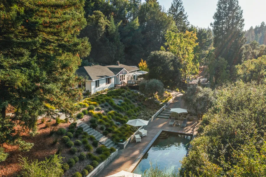 Elevate your wine country lifestyle with this tasteful Chalk Hill residence situated on 4.2± acres. The private, single-level home exudes modern elegance and consists of three bedrooms, two full bathrooms, plus a detached bonus room and bathroom. As you enter the home, the ease of entertaining or enjoying a quiet evening welcomes you. The kitchen is equipped with high-end appliances, including a Miele microwave and oven combination, a Thermador cooktop, a Subzero refrigerator, a Miele dishwasher, a Subzero wine cooler, and a pantry. Enjoy the family room graced by a wood-burning fireplace, and French doors that seamlessly connect this area to the front deck, blending indoor-outdoor living. The deck offers captivating views, providing an ideal setting to unwind, host gatherings, or enjoy your morning coffee. The formal living room offers wonderful views of the Mayacamas Mountains and the 45-ft long swimming pool below. The primary bedroom is en suite with countryside views and has direct access to a side patio. The detached bonus space can be used in a variety of ways and features a full bathroom along with an adjoining outdoor shower. Meandering paths and beautifully landscaped front and rear yards enhance the aesthetic appeal. Enjoy the picturesque drive through Alexander Valley and the nearby wineries, restaurants, and shops Healdsburg has to offer. This property, with its impressive amenities and surroundings, is the quintessential wine country escape.