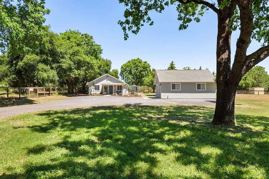Experience Pride of Ownership! Discover the perfect blend of move-in-ready comfort with a property that promises lasting appeal. Nestled on a fully gated 2.2-acre parcel surrounded by majestic Heritage oak & fir trees, the charming cottage offers tranquility and natural beauty. This multifaceted property is ideal for those seeking their first West County property without a need for immediate projects, or for those who in the future envision expansion possibilities. The cottage, remodeled in 2007, awaits your arrival, and is fully equipped for relaxation. Modern amenities include fresh appliances, newly refreshed cabinetry, a laundry room and an oversized, sheetrocked, detached two-car garage. Outdoor delights abound with raised vegetable beds, and a fully fenced pasture featuring a Run-In Barn. Board horses, llamas or maybe even raise goats. Tucked away at the end of a lane, this gated parcel exudes privacy and tranquility. Consider customizing and extending the cottage or even building your dream home while residing in the existing home. When your new house is complete, repurpose the cottage for extended family or overnight guests. Seize this opportunity to make this truly unique property your own. Envision yourself in this idyllic setting right now, and well into the future!