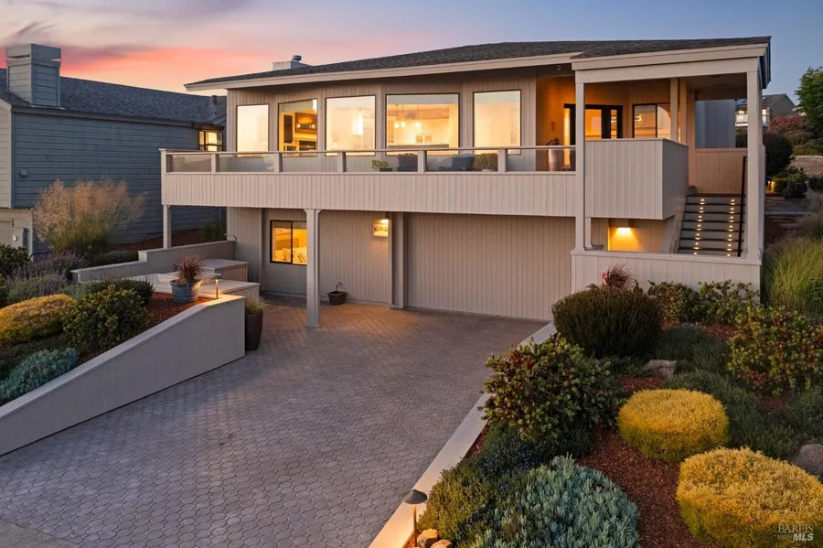 Welcome to your dream ocean view home in the idyllic coastal town of Bodega Bay. Presented for the first time on the market, by the original owner and builder, this well maintained gem offers panoramic ocean vistas from the Point Reyes Peninsula to Doran Beach, Tomales Point, Bodega Head, Seal Rock and the bay, capturing the stunning natural beauty of the coast. The upstairs open floor plan and large picture windows creates a bright, inviting space. The gourmet Kitchen has top-of-the-line appliances, custom cabinetry, and a generous island. The master suite has a five-piece master bath, sitting area and walk-in closet. Downstairs there is a bedroom and full bathroom, extra-large utility room featuring a workspace/laundry area with ample storage as well as an office/bonus room located adjacent to the garage. Garage features custom countertops, storage cabinets, and a wine storage area. Exterior rear deck has seating, fire table and lower patio with stamped concrete design and hot tub, an outdoor oasis with landscaping providing privacy and backing to spacious common area. Located near pristine beaches, enjoy easy entry to the coastline along with close proximity to amenities such as gym and pool, locker rooms and saunas, tennis, pickleball, bocce court, golf course and more.