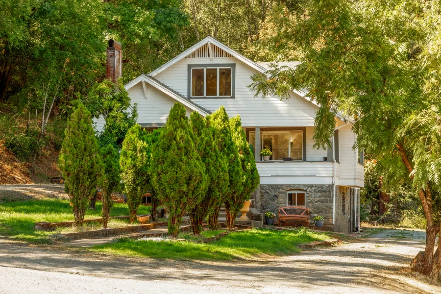 Properties like this are often kept for generations. This peaceful, private sanctuary is nestled in a beautiful natural setting and is a magical palette for a creative lifestyle. The charming 1910 residence has good bones for potential renovation. This main home is about 3,075± square feet and features three bedrooms and two bathrooms, including a full "daylight" basement. Rustic outbuildings include a guest home of 840± square feet with two bedrooms and one bathroom, and a studio loft at approximately 600± square feet. Thirty magical acres of privacy, yet only a few minutes to the Healdsburg Plaza. There are over 2,000± feet of Felta Creek frontage and a natural plunge pool in Felta Creek at the waterfall. The enchanting property holds a main residence centrally located on the property and surrounded by scenic vistas. Enjoy stunning views of Fitch Mountain and Mount Saint Helena, and an elevated pond, which comes complete with state permits. The property also boasts an alternate homesite with elevated views, offering endless possibilities. Wander through the majestic redwood grove by the creek, an ideal spot for barbecues and picnics. A historic 1,100± square foot barn awaits. From the kitchen window, enjoy sweeping views of a serene 3-4± acre meadow.